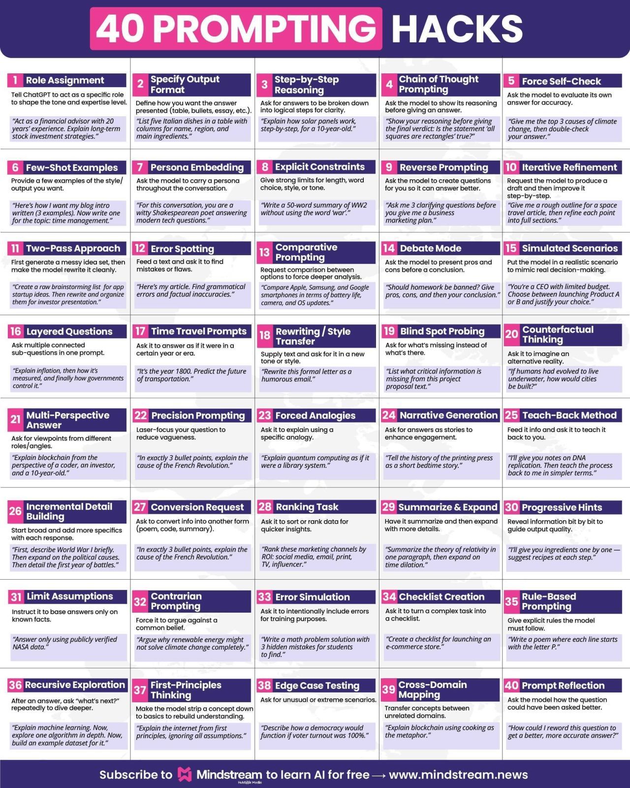 This LinkedIn creator shared a list of 10 powerful prompting hacks, and they are seriously impressive. Here are three of my favorites that you can start using right away:
