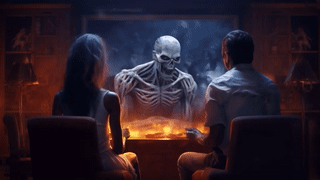 MIDJOURNEY PROMPT: photo of man and woman watching Halloween show on TV --ar 16:9 --style raw