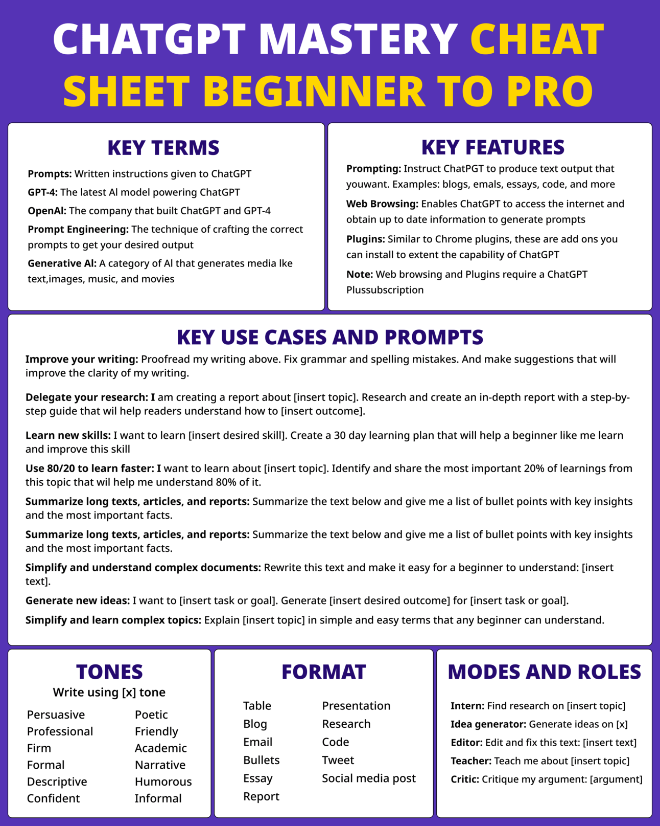 Please use this cheat sheet to learn more about ChatGPT prompt techniques. I will send you additional useful AI guides and tips in the upcoming emails.