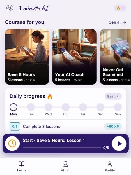 3-Minute AI gives you free courses. Pick a topic. Learn by doing, not by reading.