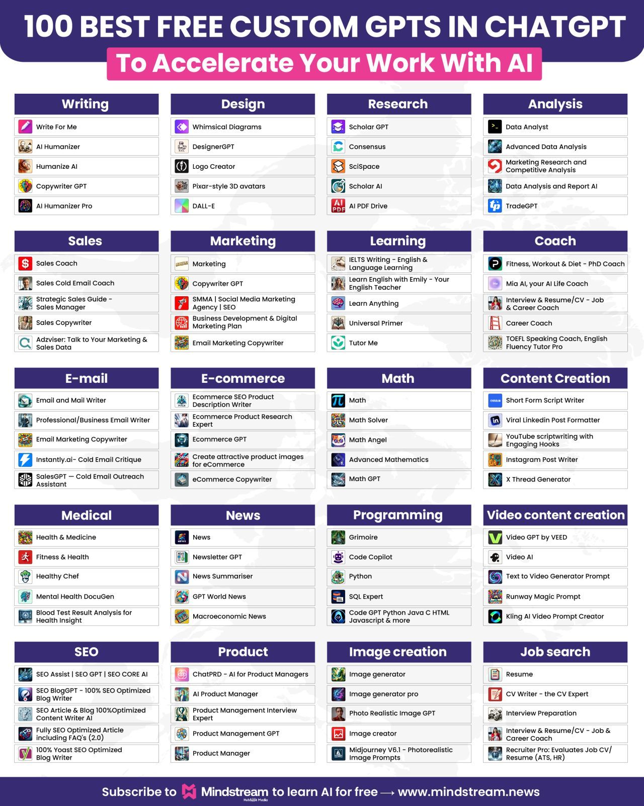 This dedicated expert spent over 700 hours testing more than 900 GPTs to bring us the top 100 free options. I was absolutely floored by the amount of time and effort that went into curating this specific list.